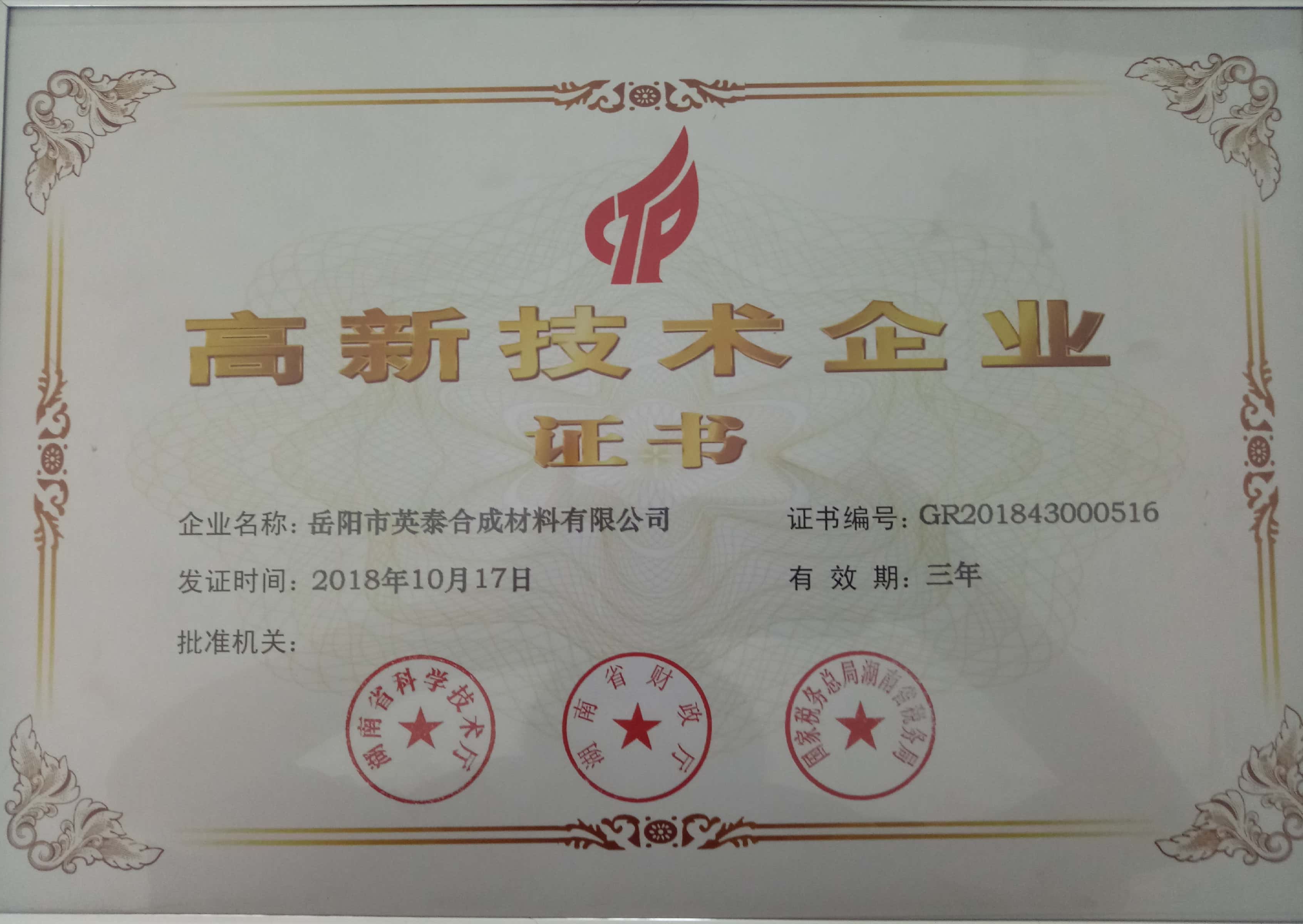 高新技術企業(yè)證書